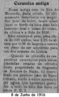 Na minha procura de dados sobre Castelo Branco em antigos jornais da nossa cidade, tenho encontrado pequenas notícias que interessa serem aqui escarrapachadas. Estas duas pequenas noticias, foram publicadas em 1916 no antigo jornal “Notícias da Beira“, passados 92 anos sobre a sua publicação, gostaria de perguntar; onde pára este pote e as respectivas moedas de ouro e prata? Tanto quanto sei… em relação a estas moedas e muitas outras, terão sido roubadas do museu Francisco Tavares Proença Júnior, no intervalo das décadas de 55 a 65, quando o mesmo estava instalado no edifício do Governo Civil e se encontrava ao abandono.